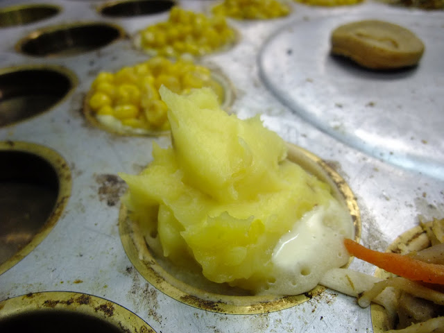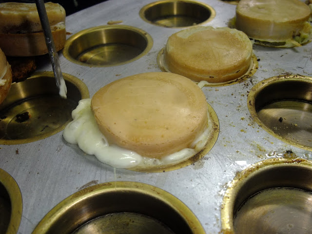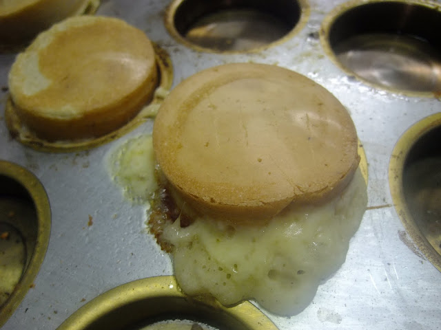 雙餡口味餡料都爆出來了,在旁邊的顧客擔心這樣還能不能合起來。