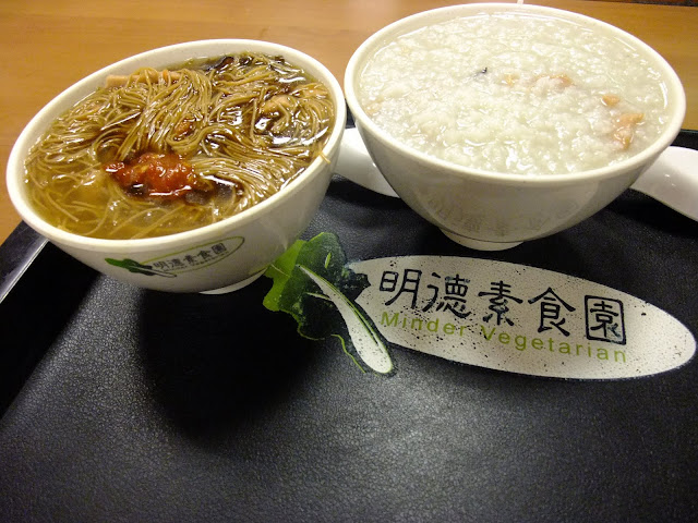 這是我們今天來明德用的早點。鹹稀飯與香菇麵線。明德餐飲多樣化的選擇,來慈濟上班真是素食的天堂。