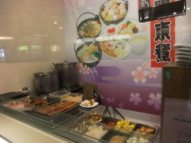 點一份關東煮店家特別把料與湯分開,湯很清甜。湯不夠可以續。可以選擇中式的碗米果。