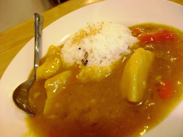 咖哩飯,不會太濃稠,勾芡調得剛剛好,清淡的咖哩不會太重口味。