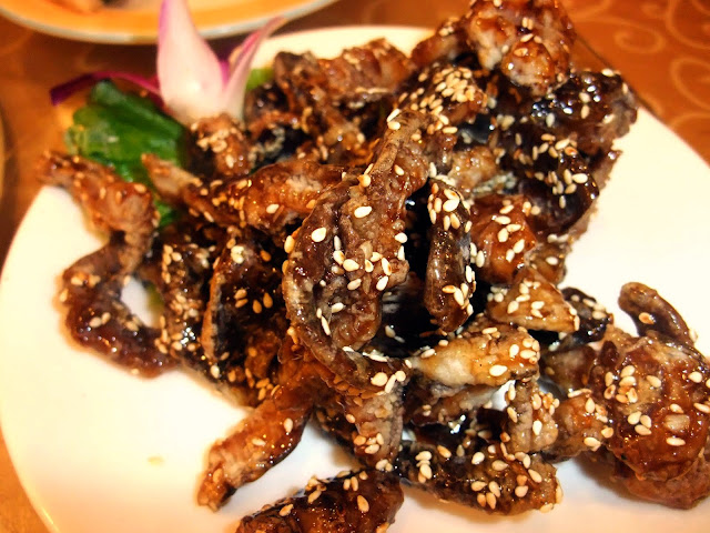 素鱔魚,甜了一點也黏口。是炸的不錯錯少了酥酥脆脆的滋味。這道菜是用乾香菇泡軟剪成絲。裹粉再炸。