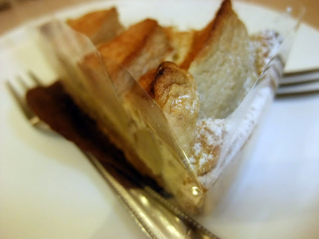 跟喵還點了下午餐 蘋果蛋糕一片。店家只要有蛋的料理就會標註在菜單上。只要沒有寫蛋在菜名就是無蛋的。店家的蘋果蛋糕,上面是鬆軟的蘋果跟核桃組成的蛋糕。不甜不膩還滿符合一般人的口味。