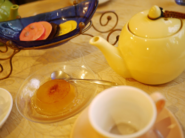 A餐還有搭配果凍和飲品。這邊的花草茶還可以,我們各自點了洋甘菊和薰衣草。