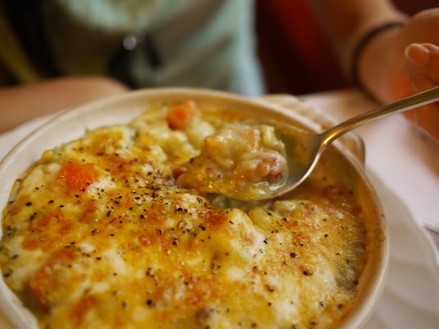 喵的咖哩焗烤,味道比較淡馬鈴薯烤得很香。起司味不會太重。灑上義大利香料,還不錯的一盤焗烤料理。裡面的餡含水量比較多了一點。