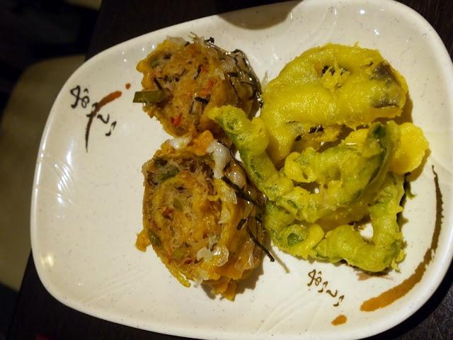 炸物,香蕉炸青椒,跟天婦羅炸物(有放沙拉醬) 內餡有米粉。炸物顯得沒那麼特別,更何況有點涼掉的炸物。