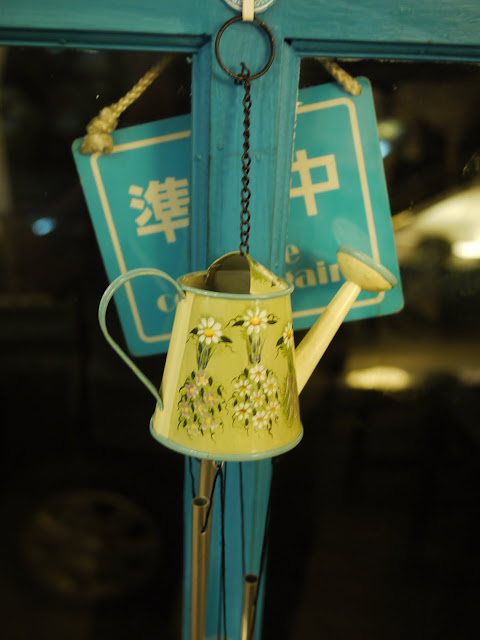 裝潢走向以藍色風格為主,舉目望去四處擺放各式各樣藍色的容器,藍色的壁上畫作,就連招牌也是海藍色。