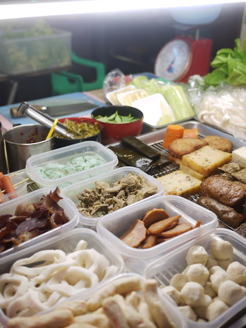 紅燒燙這攤也是講究清爽不油膩 我們就來試試看吧。桌上的滷味食材琳瑯滿目。