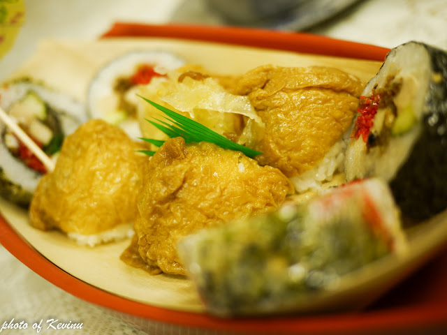 噹噹~~綜合壽司 視覺美觀第一名! 還插個日式傘當裝飾品。版主第一推薦此餐。口感還不錯,還有我最愛的壽司皮~~