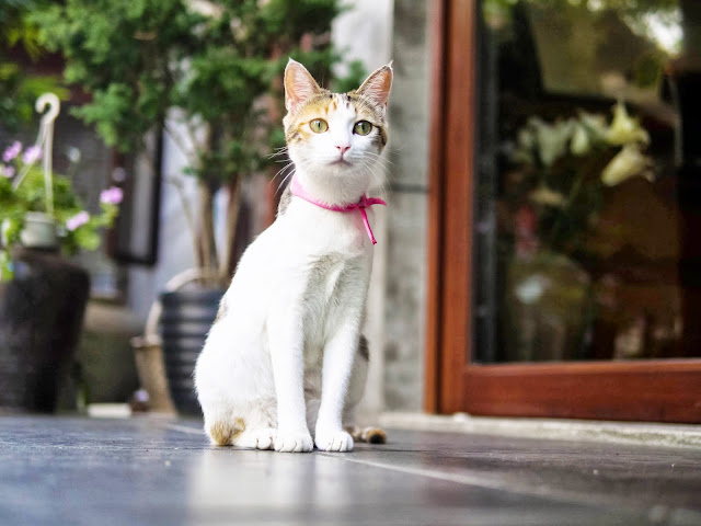 聽老闆娘說,有些貓咪是來自街頭,有些竟是被棄養至此,有些是友人送的。但各各都活潑大方,不怕人,想來是在這個漂亮的院子裡過得都很好,個個毛色發亮都很健康。